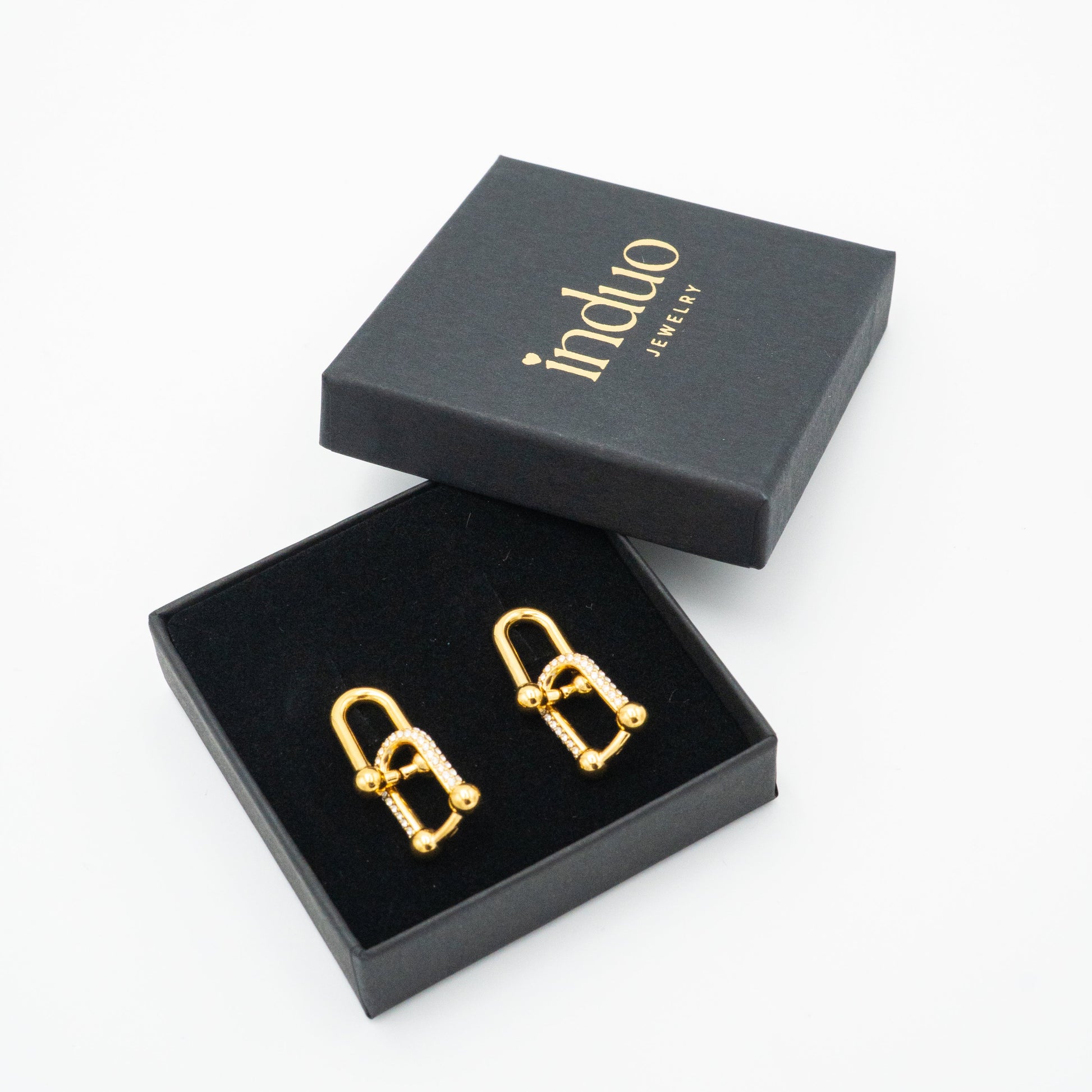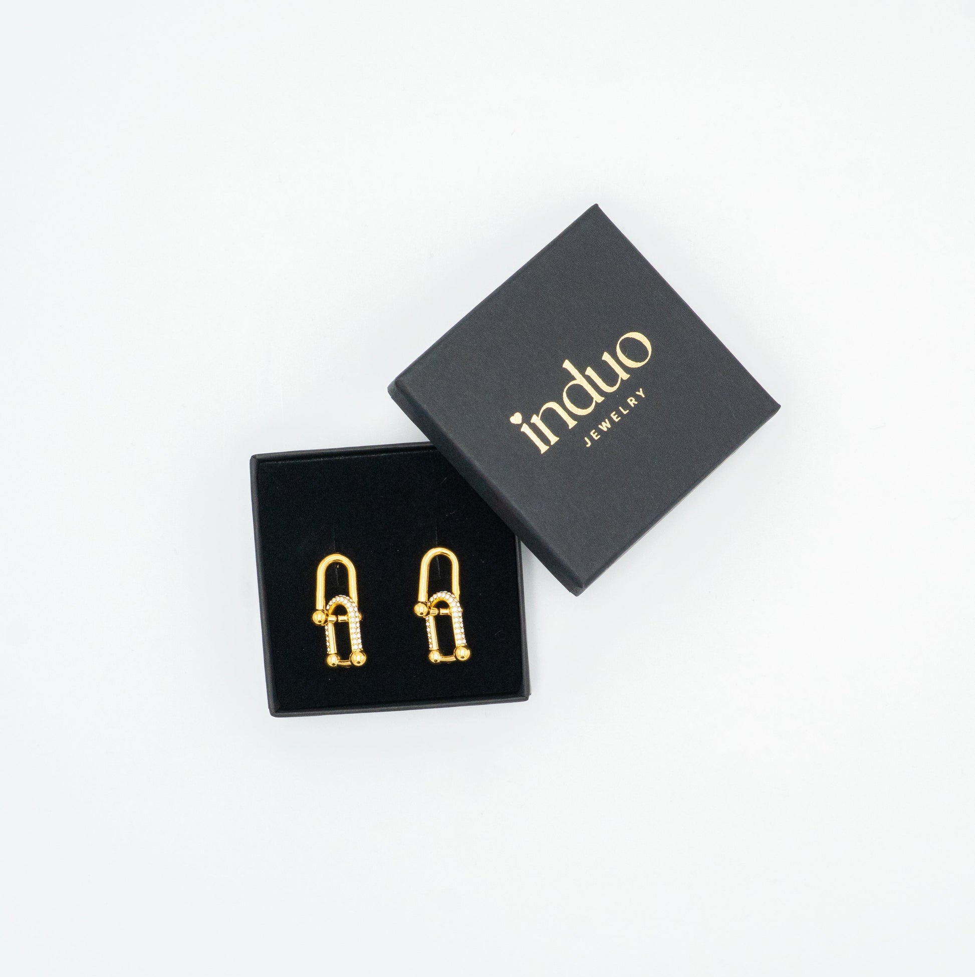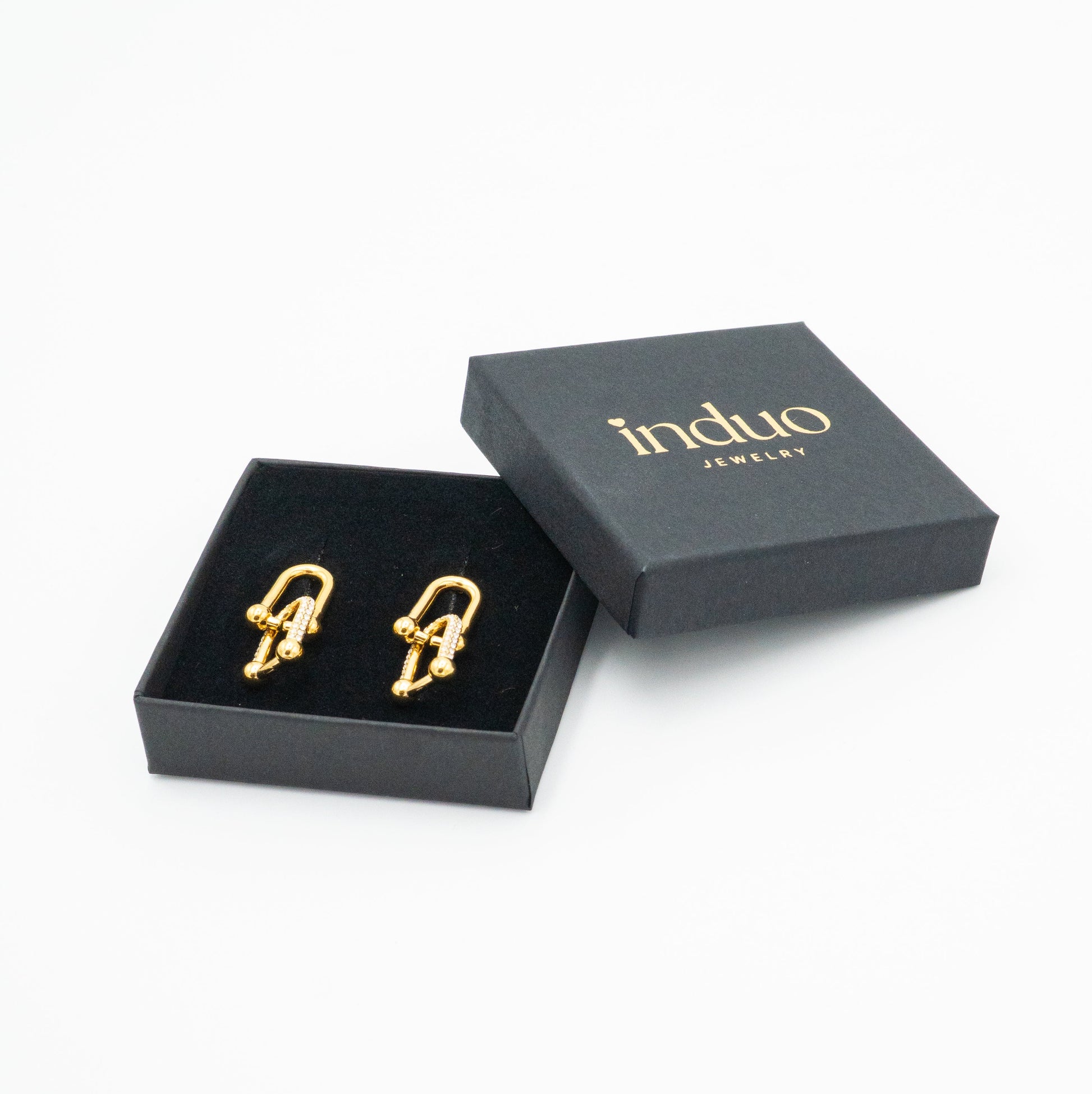 Realizzati in acciaio inox resistente con finitura oro, impreziositi da zirconi luminosi che catturano la luce in ogni movimento.